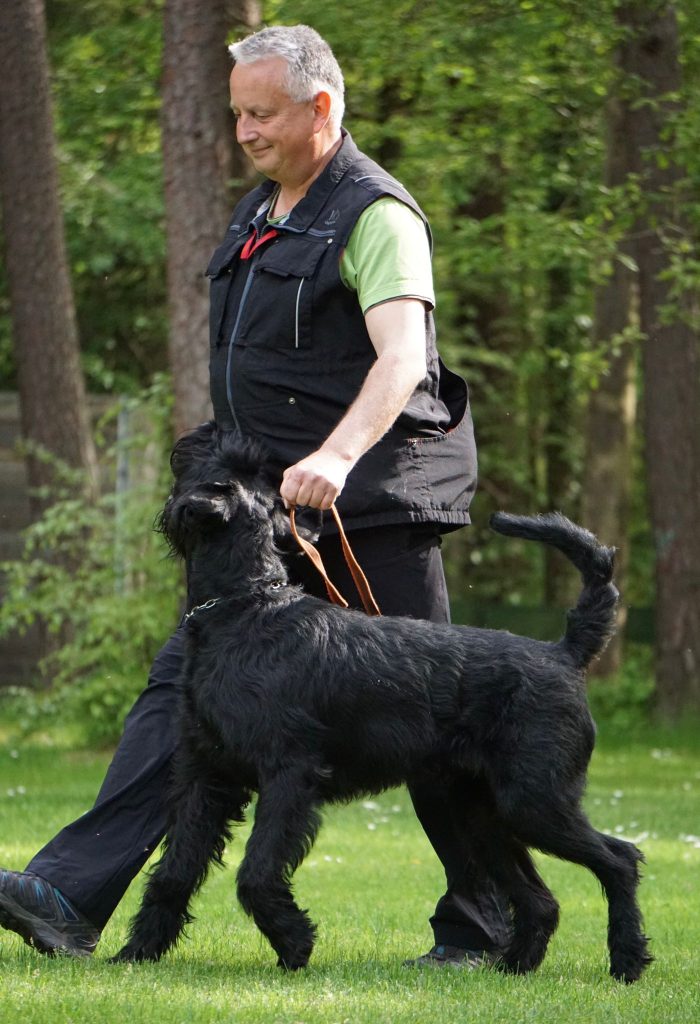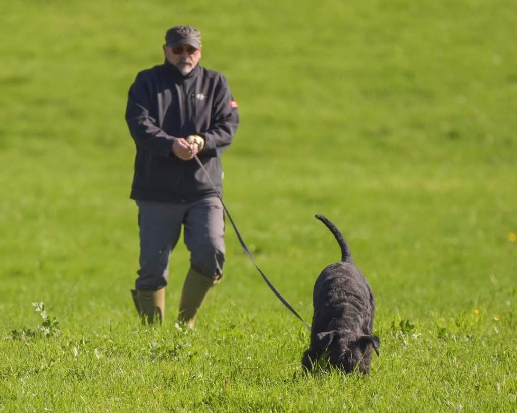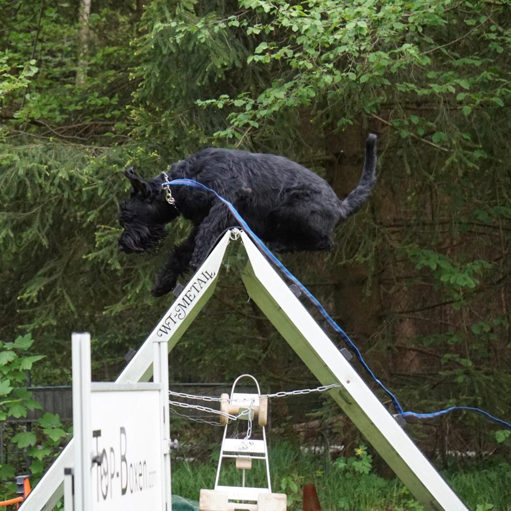 Er muss ein Bringholz auf ebener Erde, über eine 1m Hürde und bei der FCI-IGP 3 über eine 1,60 m Schrägwand apportieren.