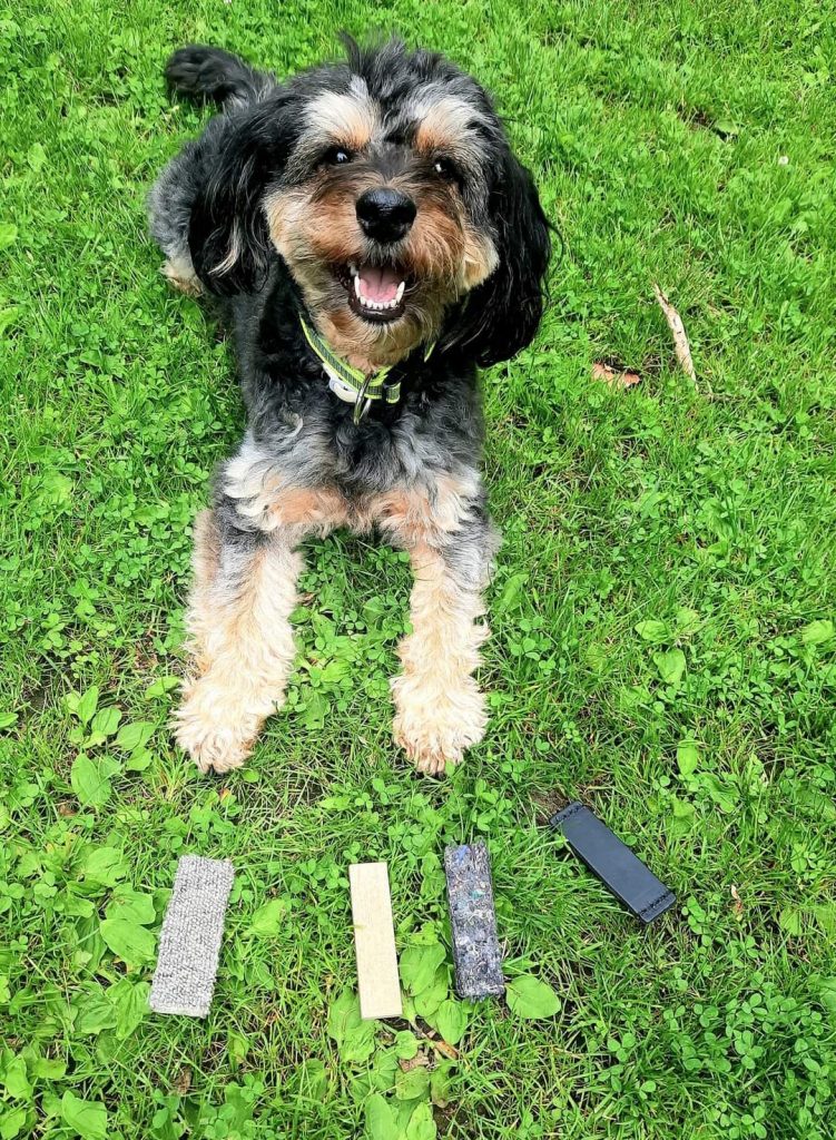 Stöbern gehört auch zum IGP und ist eine gute Alternative zu Fährte. Hier muss der Hund auf einem vorher abgesteckten Quadrat Gegenstände erstöbern und verweisen.